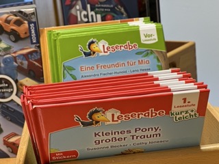 Neuer Lesestoff für unsere Bücherei: Für 400 € haben wir brandneue Bücher insbesondere für die absoluten Leseanfänger*innen angeschafft: Leseheftchen in Silbenschrift und Bücher aus der Reihe Leserabe. In den Büchern der Vorlesestufe werden Hauptwörter durch Bilder ersetzt, sodass die Kinder leicht in den Vorleseprozess miteinbezogen werden können. Die Bücher der 1. Lesestufe „kurz und leicht“ beinhalten einfache Texte in großer Fibelschrift für einen schnellen Leseerfolg.